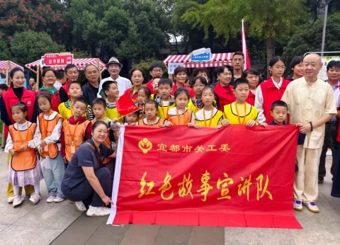 宜都市故事学会的老少故事家闻讯赶来。故事学会副主席、演讲故事近50年的资深故事家刘涛,给大家带来红色故事《一把手传奇》,讲述出生于宜都市松木坪镇江家湾村的开国上将贺炳炎的事迹。聪明豆播音主持人培训中心小故事家陈思瑞、曾子叶、李秦菲,分别演讲了《轻轻翻开我的语文书》《独臂将军贺炳炎》《胡敌故事》。几位故事家的演讲,语言随情节发展而时疾时缓,表情因人物心情变化而时惊时喜,伴之以丰富多变的肢体语言,深深吸引了现场聆听的观众。