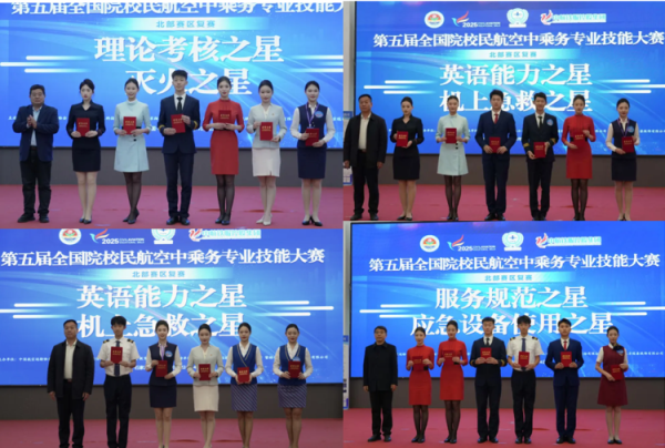 2025年第五届全国院校民航空中乘务专业技能大赛北部赛区复赛评选出各赛项前三名;个人三等奖15项、二等奖10项及一等奖5项;团体优秀奖5项、三等奖6项、二等奖4项及一等奖2项;优秀指导教师4人。