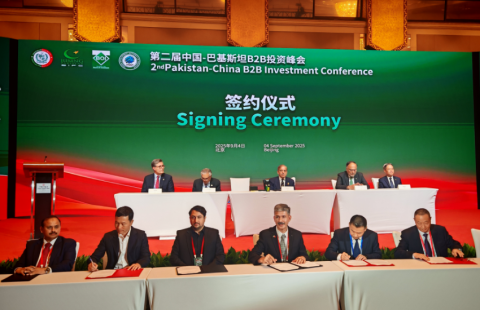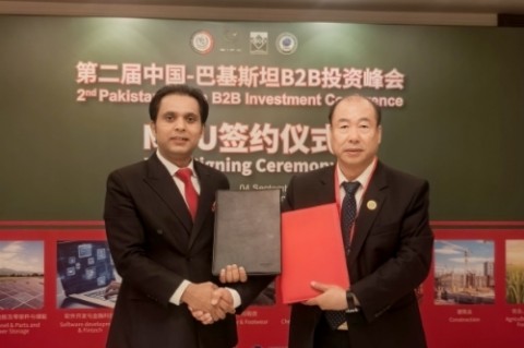 上合组织国家多功能平台专委会副理事长兼秘书长孙海山代表中方企业同巴基斯坦政府代表签署投资项目合作协议