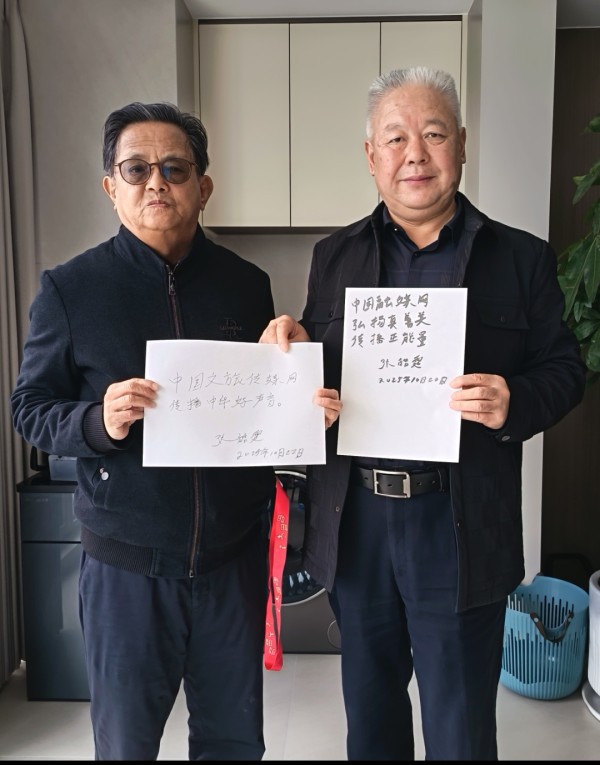 当胡振栋向张皓霆介绍《中国文旅传媒网》和《中国融媒网》有关情况时,他说:“这两个‘中’字头媒体,品牌都很响亮,一个助力文旅融合国家战略实施,另一个则融通八方信息赋能强国建设。”并欣然为两家网站题词——“中国文旅传媒网,传播中华好声音。”“中国融媒网,弘扬真善美,传播正能量。”