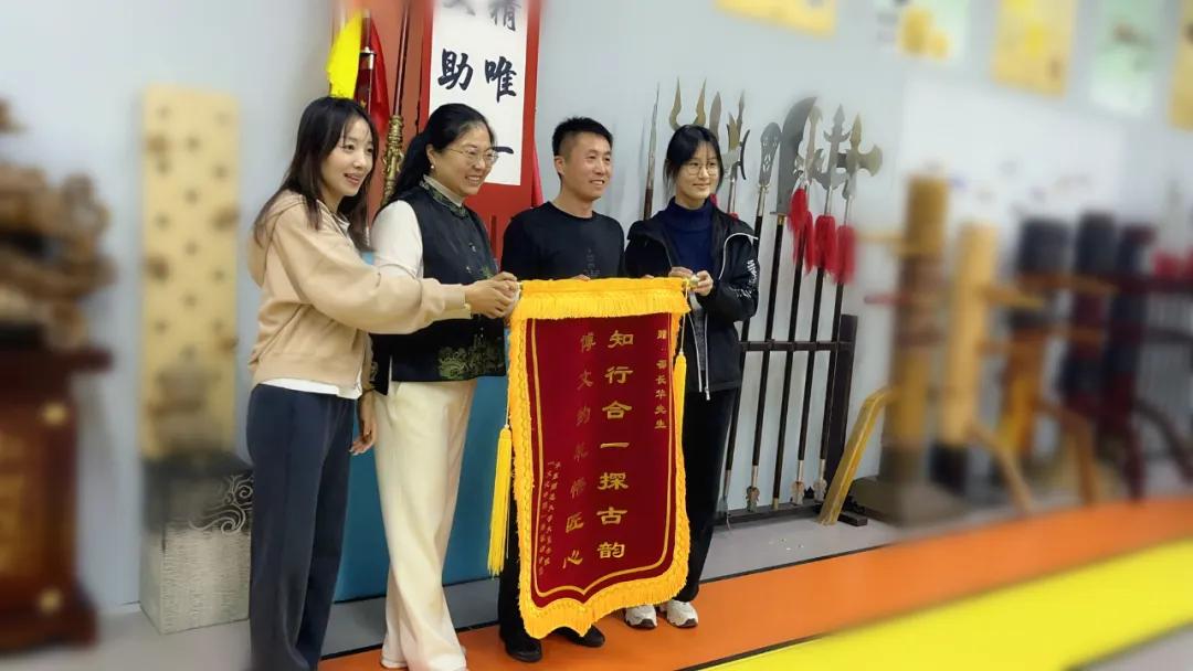 愉快而有意义的研学活动接近尾声。由学生代表和陶洁老师一起代表华东师范大学大夏书院向邵长华老师赠送锦旗“知行合一探古韵,博文约礼悟匠心”。师生们恋恋不舍的道别离开武学源,并相约下次华师大校园见。大家纷纷表示,这场研学不仅学会了一套养生功法,更读懂了中华武学"内外兼修、知行合一"的深层内涵。